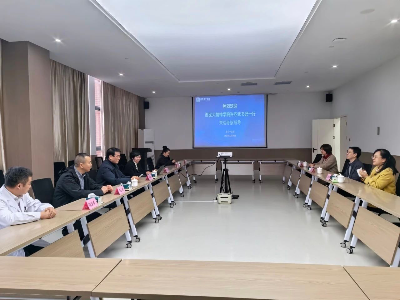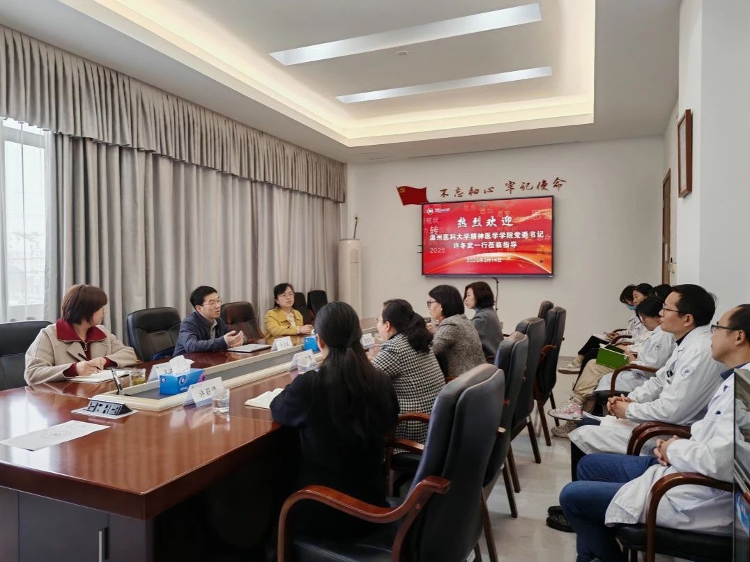 最后一站,学院领导来到黄岩区第三人民医院。黄岩区第三人民医院牟宏波院长详细汇报了黄岩区第三人民医院的发展历史、医院理念、已获成绩和使命愿景,展示了医院在学科建设、人才建设和基层精神卫生社会服务方面取得的成绩和未来新院区发展方向。蔡路院长表示,希望借助包子漫画 平台,全方面开展医教研合作,精准聚焦科研项目,不断拓宽合作领域。