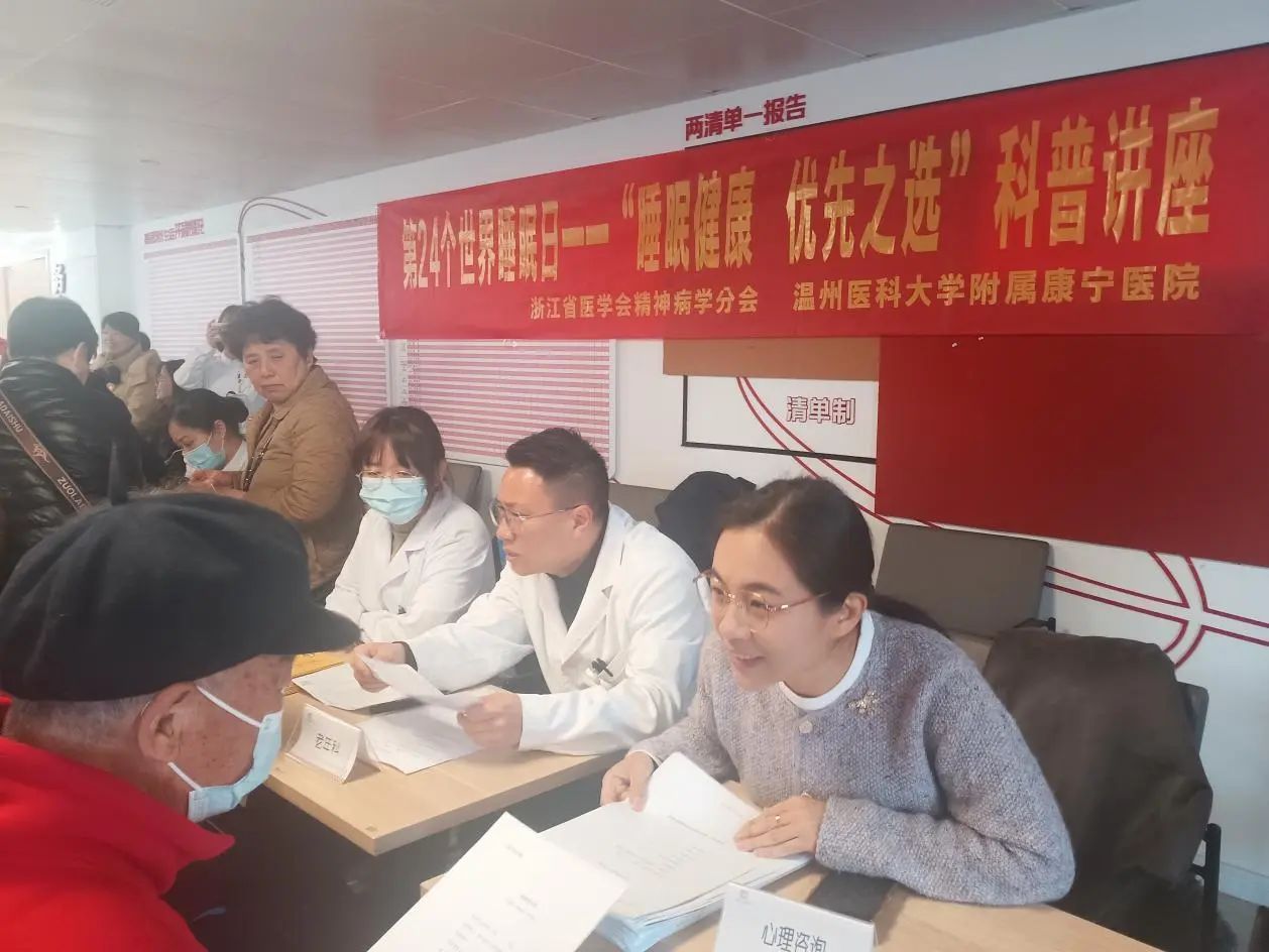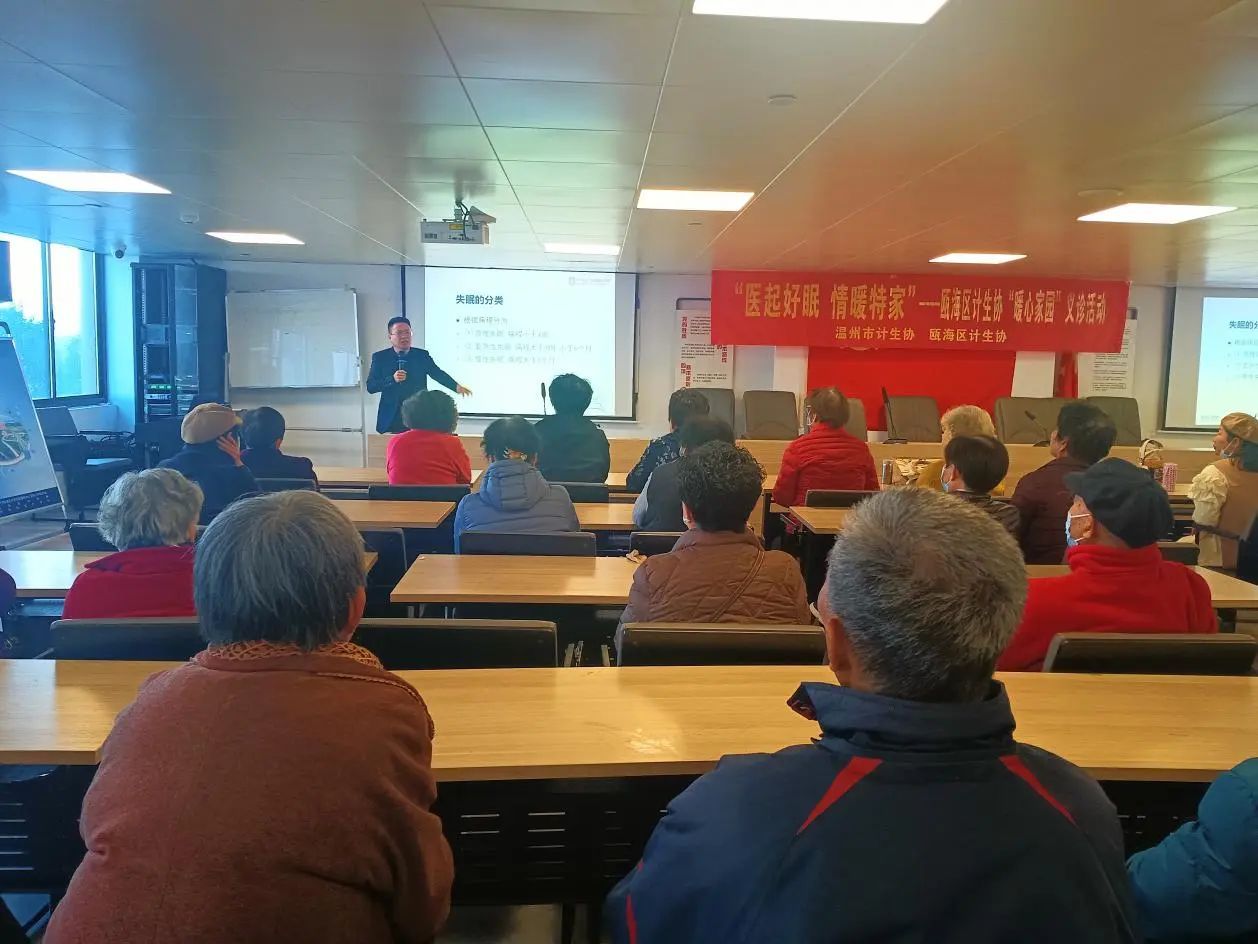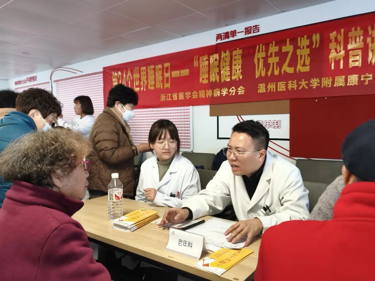 World Sleep Day 世界睡眠日 在 3月21日以 “健康睡眠,优先之选” 为主题的世界睡眠日,包子漫画 教工第二党支部与学生团委携手包子漫画 附属康宁医院医生,在瓯海区新桥街道新桥社区举办“医起好眠,情暖特家”活动,为社区老年人送上温暖的健康关怀,以实际行动践行党的宗旨,让党建引领健康服务深入基层。 党建引领,共筑健康防线 活动开始,社区代表发表开场致辞,向在场的老年人介绍活动目的与流程,强调睡眠健康对晚年生活品质的重要性,为活动拉开序幕。随后,附属康宁医院陈孙克医生深入浅出地讲解老年人睡眠主题讲座,剖析睡眠障碍的类型、成因、危害及改善方法,结合实际案例,让老人们正确认识睡眠问题。同时,擅长老年专科与精神科的医生团队为老人测血压、血糖,解答健康疑问,提供个性化睡眠建议,涵盖饮食、运动、心理调节等多方面,以专业力量为老人健康护航。