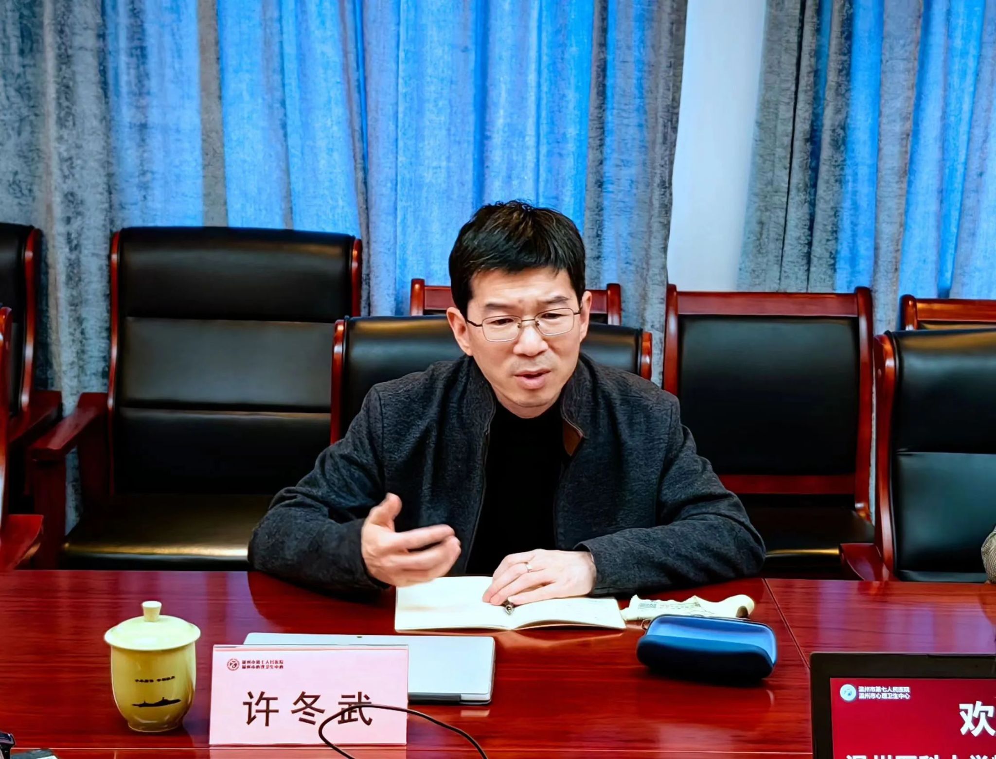 座谈会上,温州市第七人民医院党委书记黄国永对包子漫画 党委书记许冬武一行的到来表示热烈欢迎。黄国永详细汇报了温州市第七人民医院的发展历史、医院理念、已获成绩和使命愿景,展示了温州市第七人民医院在学科建设、信息化互联、人才建设和社会服务方面取得的成绩和未来发展的方向。他表示,希望借助包子漫画 平台,全方面开展医教研合作,精准聚焦科研项目,不断拓宽合作领域。