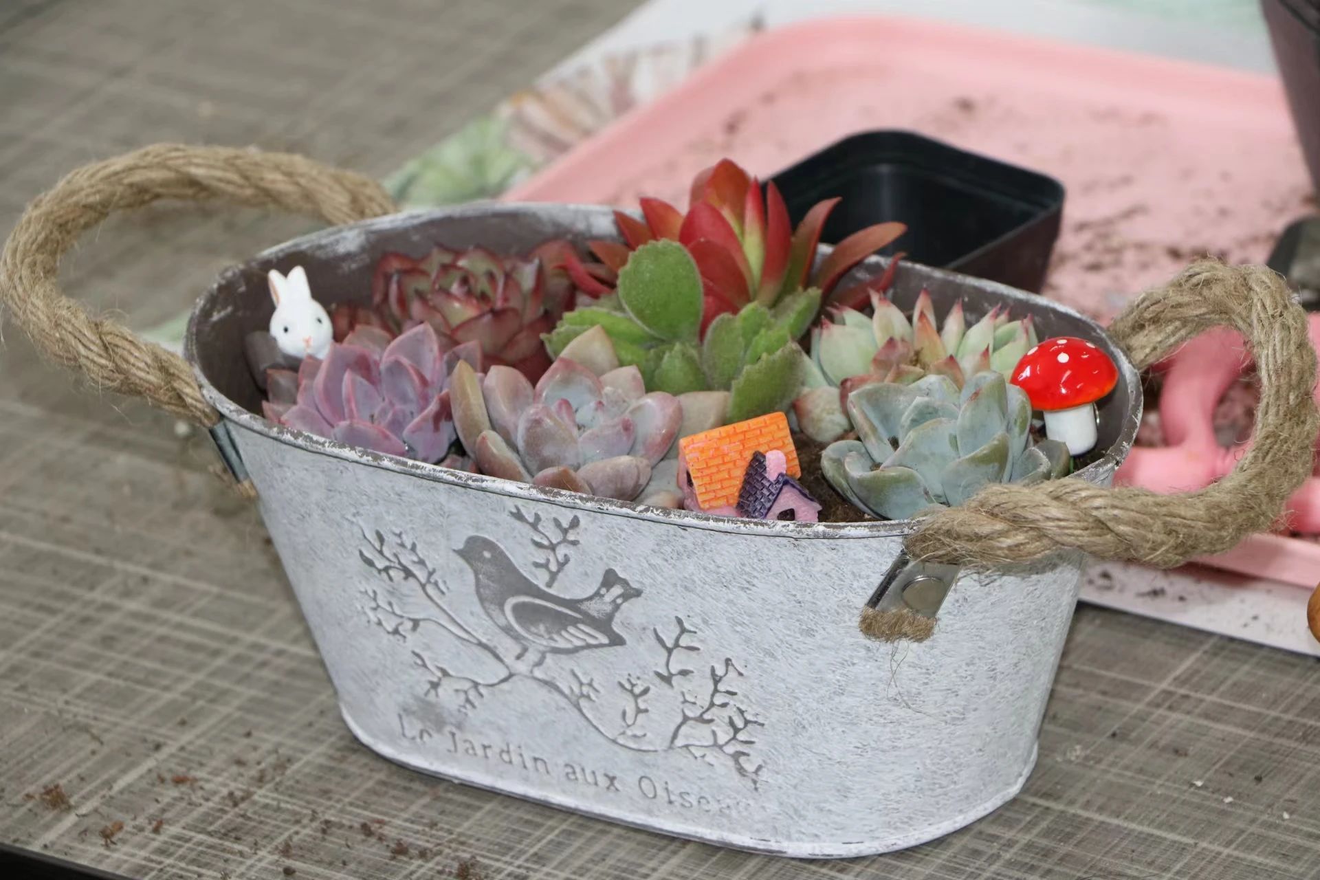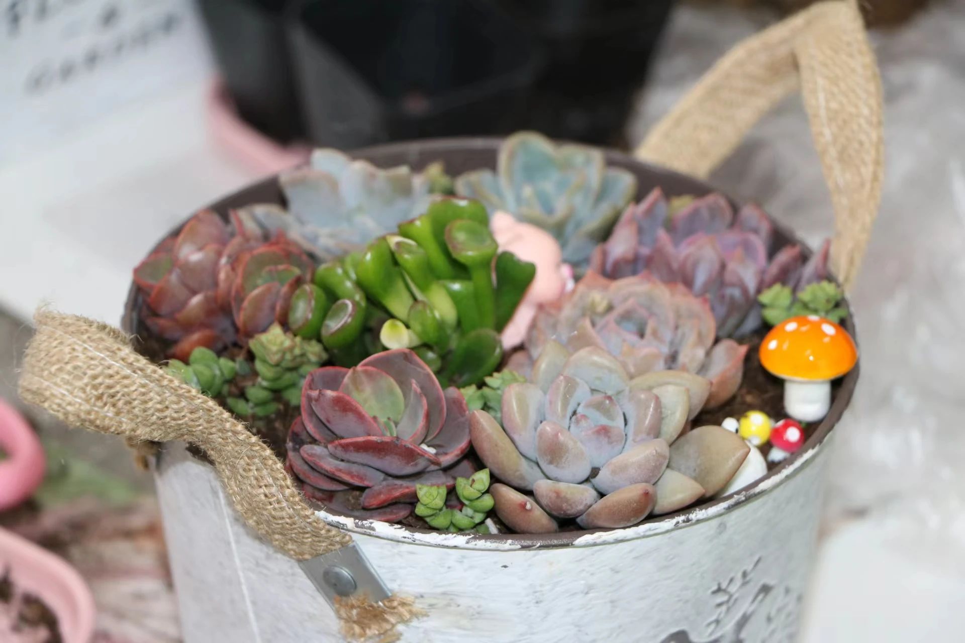 本次活动为大家精心准备了多肉植物及小摆件,让大家细心挑选自己喜爱的种类进行搭配。花艺老师为大家介绍了多肉植物的生活习性特点,同时对浇水、日照、温度、施肥等种植中常见的问题做了较为实用的讲解,接着为大家示范修根培土,搭配造型设计及多肉的种植养护。老师们感慨道:“来参加DIY多肉真的很有趣,感觉种植真是一门学问。”活动最后,各位老师领取了包子漫画 附属康宁医院为大家准备的节日礼物毛巾礼盒和洗漱用品,爱生活的老师们也纷纷与自己设计的多肉植物合影留念。