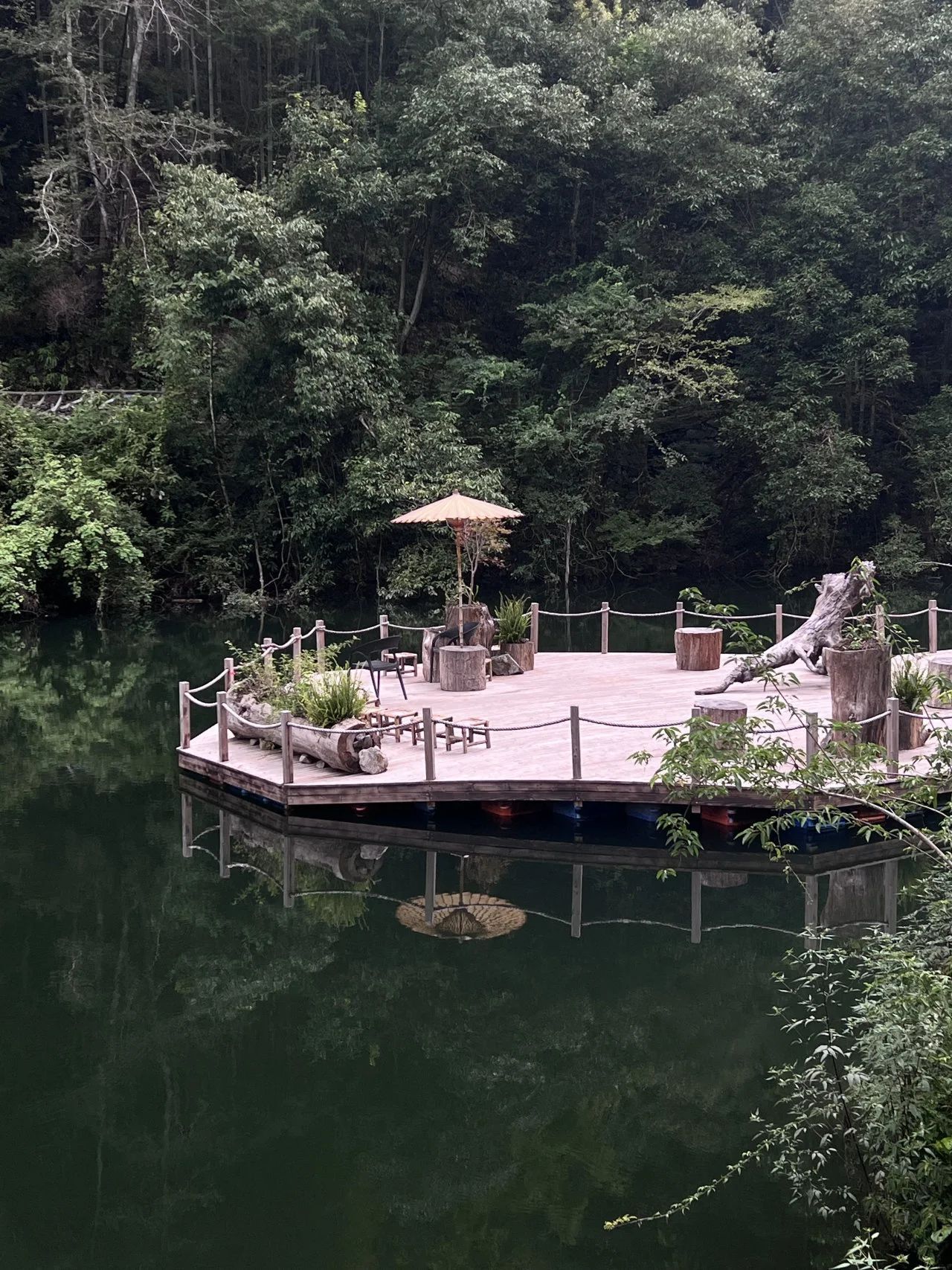 下午我们前往了南浦溪景区,其中一位畲族的向导向我们介绍景区的狮尾碇步和炊天饭甑,并为我们讲解了其中美丽又古老的传说。晚间我们载歌载舞,吃着烧烤吹着晚风,与彝族的朋友同跳竹竿舞。 最后一站来到了库村古镇,静谧的古镇在水面上像一颗唐朝遗落在历史蒙尘的明珠,在夜色下散发莹莹辉光。我们体验了富有情调的小酒馆,坐在大台的石阶上看露天电影,远处的弄巷传来几句低唱…