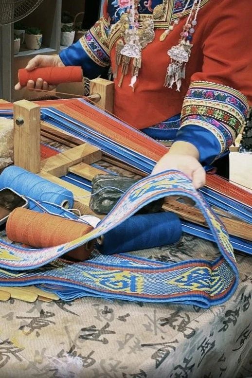 三重漈的游玩很快落幕,随后我们再次来到了库村,泰顺的一座古村落。伴随着“走走泰顺,一切都顺”的口号,再次欣赏白日的古村烟火气。导游带着我们领略了畲族的传统民俗服饰,鲜艳的色彩与丝线让这非遗的传承格外闪亮。