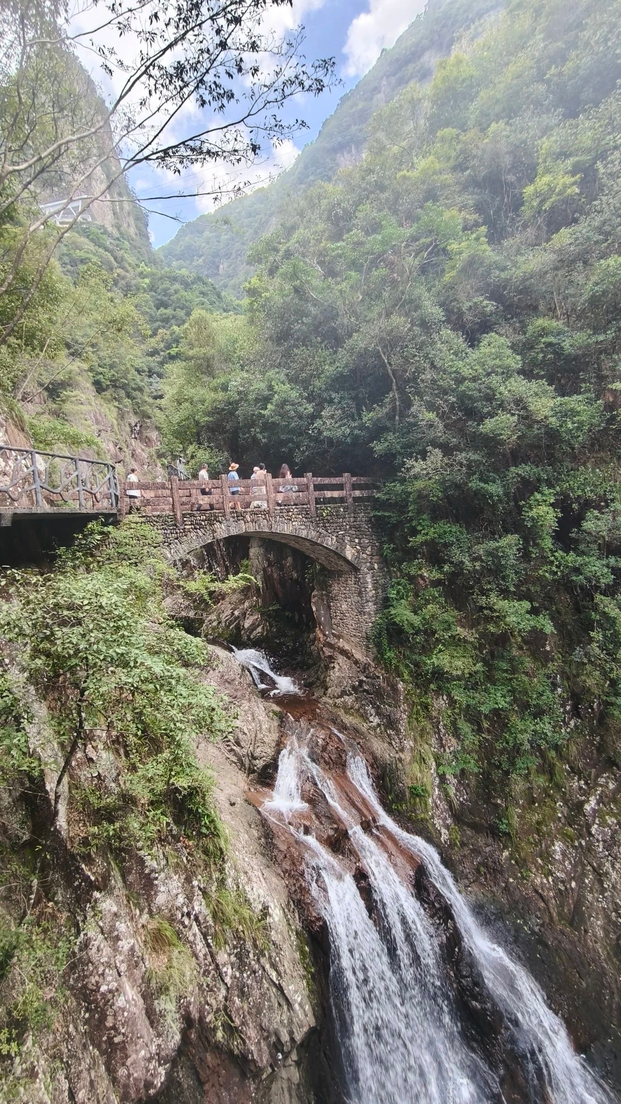 2024年9月8日上午八点,“杭温高铁大学生旅拍”南浦溪站观光团乘坐大巴来到了三重漈。葳蕤山河光,山溪浮鹅毛,是对三重漈的最好描述,我们跟着“畲族小师妹“充分领略了这一片泰顺山水的自然风情。