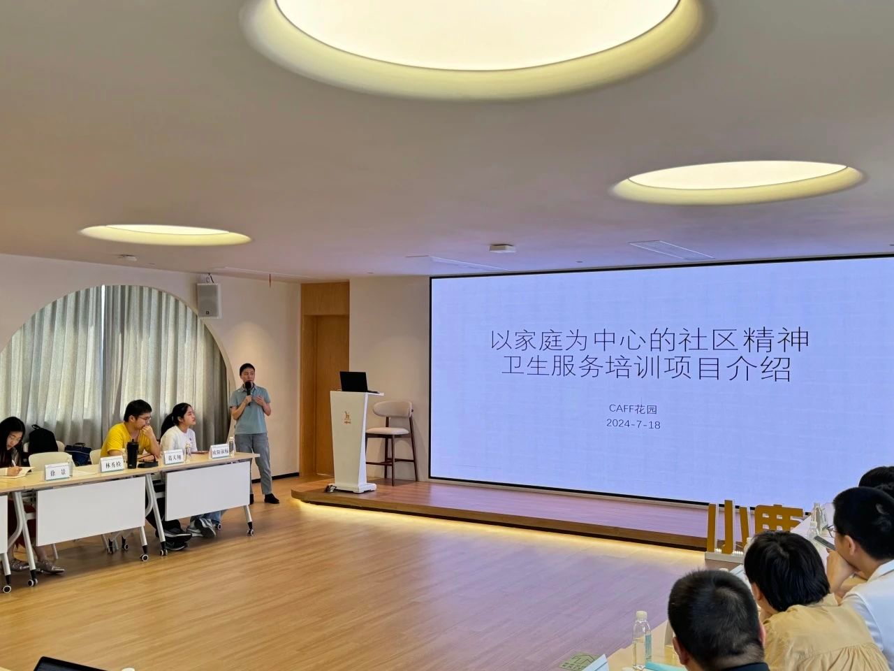 管丽丽教授介绍了CAFF(Care For Family)花园是国内首个、也是规模最大的为严重精神障碍患者家庭及其未成年子女提供服务的公益项目,阐述了该项目在精神重症患者家庭支持方面的重要作用,让与会者对相关工作有了更清晰的了解。程章副教授对以家庭为中心的社区精神卫生服务培训项目进行介绍 ,该培训项目对象是为严重精神障碍患者提供服务的社区精神卫生工作人员,培训的目的是提供以家庭为中心的精神卫生服务需要的基本知识,技能和服务网络设置,通过本项目的培训也将为CAFF花园志愿者进社区开展以家庭为中心的治疗提供实操性知识。