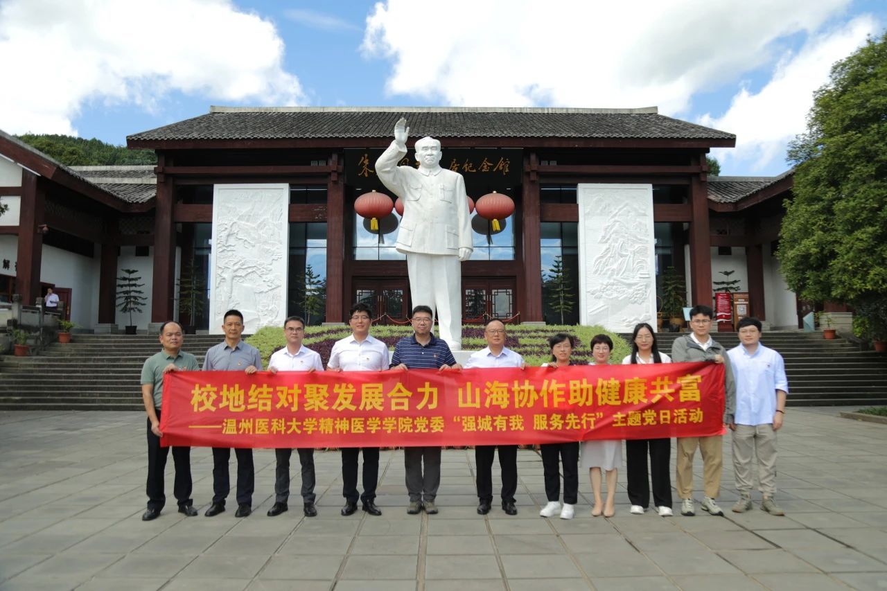 当天下午,温医大包子漫画 、温医大附属康宁医院和南充精神卫生中心领导、博士团专家及教工党员代表前往仪陇县朱德故居开展红色文化研学活动。