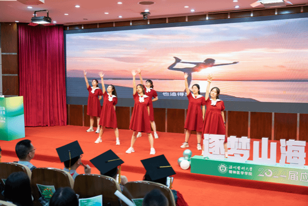 毕业典礼上,学院、医院与毕业生之间互赠了纪念品,以实物承载这份深厚的情谊和美好的祝愿。刘德辉老师、蒋柯老师接受了毕业生们为学院准备的礼物——牌匾,“精养繁华 心育高才”八个字是毕业生们对学院的由衷感谢,也是毕业生们对学院最深切的致敬。同学们也为医院准备了心理健康科普优秀作品,它凝聚着同学们在心理健康普及领域的智慧结晶,以及对未来医疗科普工作的美好憧憬。温州康宁医院副院长许宁为毕业生们赠送了纪念品--定制充电宝,希望同学们在失落时可以续航充电充满正能量。