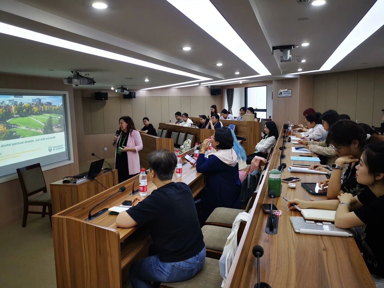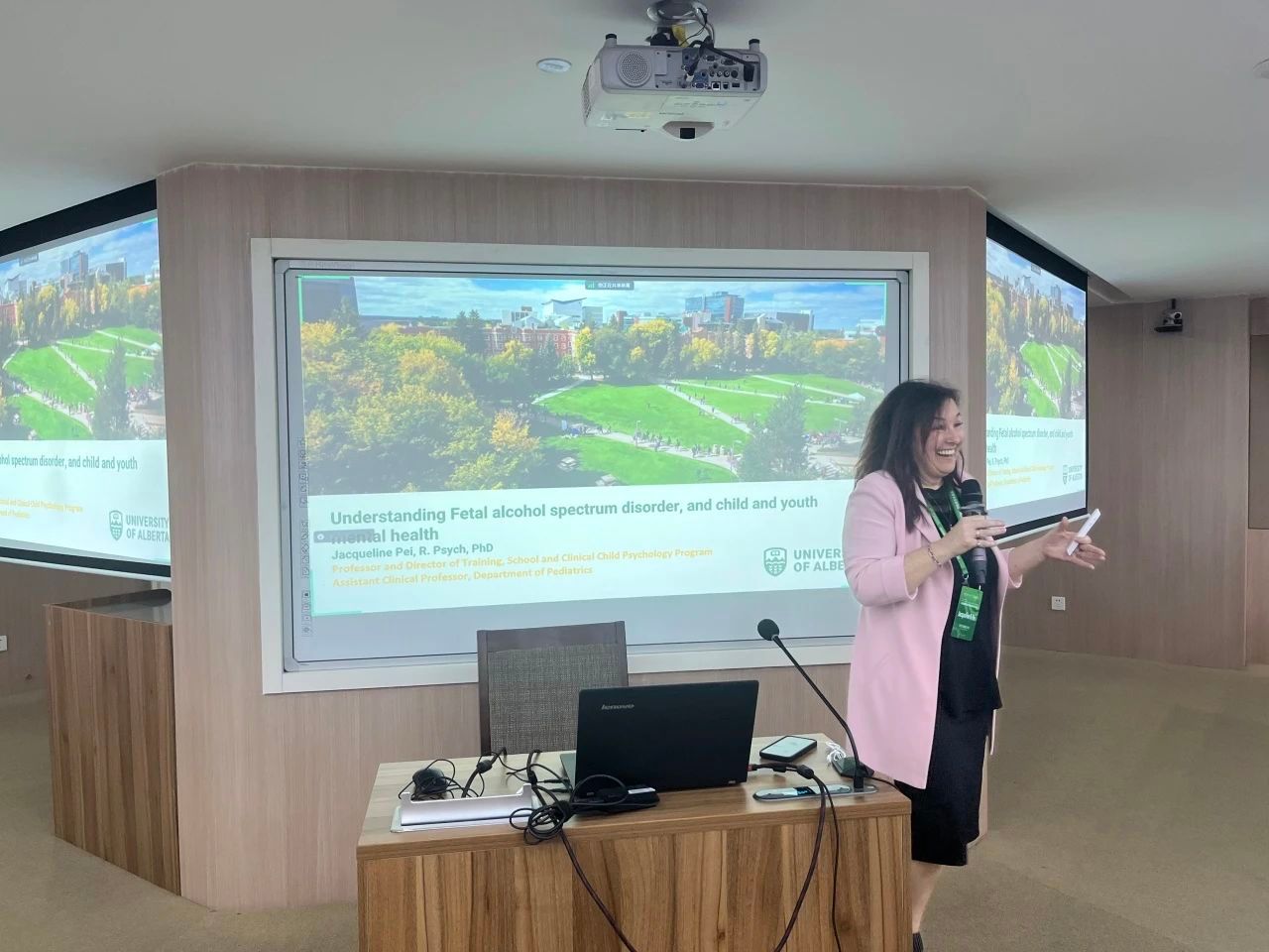 Jacqueline R Pei教授带来了“Understanding Fetal Alcohol Spectrum Disorder and Child Use Mental Health”的学术讲座。她详细解读了胎儿酒精谱系障碍(FASD)的病理特征,并探讨了这一病症对儿童心理健康的潜在影响。Pei教授的讲座深入浅出生动风趣,不仅为我们提供了此研究领域的专业知识,还激发了大家对儿童心理健康问题的关注与思考。