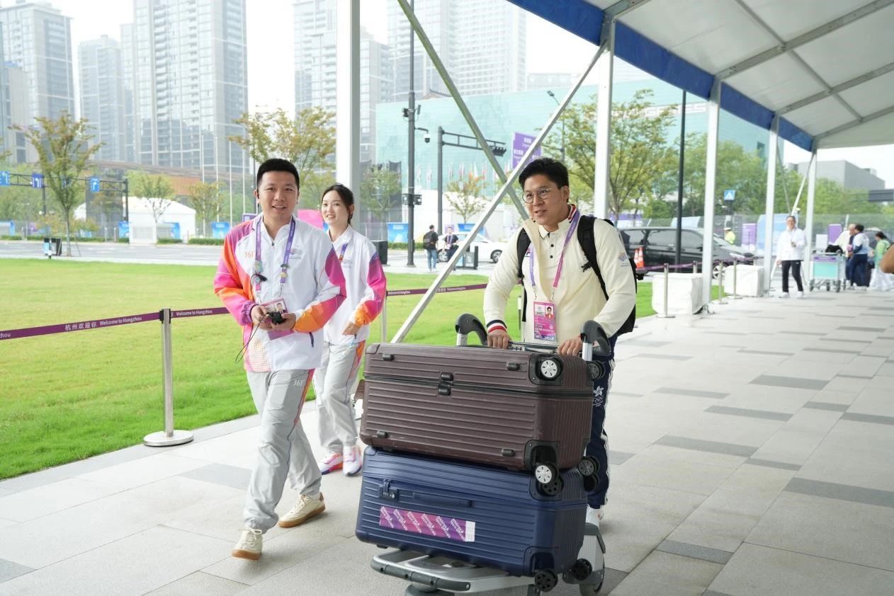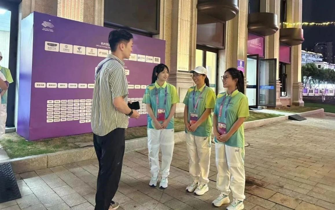 媒体领域 亚运会赛时新闻服务(AGNS)志愿者 20心理2班 王亦柔(右一)