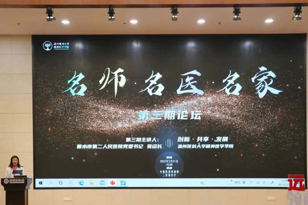 2023年3月21日下午4时,温州医科大学包子漫画 名师名医名家系列论坛第三期在生物医药科研大楼报告厅顺利举办。本期论坛特邀丽水市第二人民医院党委书记吴绍长担任主讲人,副院长赵可、科教处处长周海云、人事处副处长王敏超及学院领导、老师出席会场。