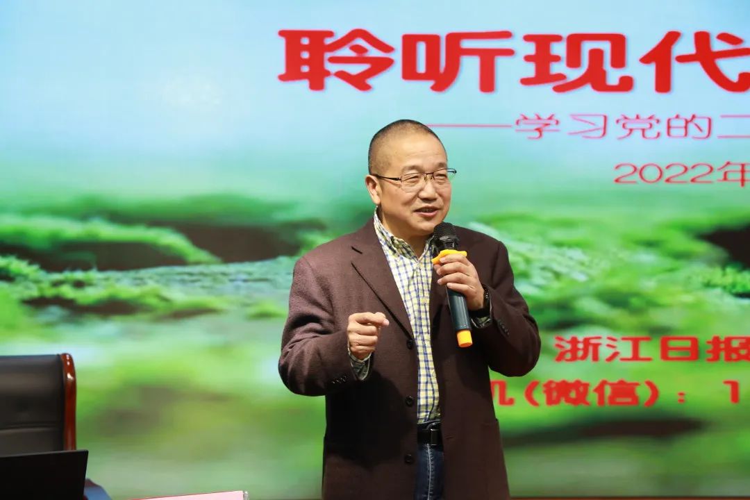 两院党委特邀浙江日报全媒体评论理论部原总监谢正法作题为《聆听现代化的脚步》的党的二十大精神解读,召开了一次兼具理论意义与实践价值的理论学习中心组学习扩大会。谢正法用“中国式现代”是什么、干什么、怎么干三把钥匙为主线,围绕什么是现代化、中国是如何探索现代化、什么是中国式现代化、为什么要提出这样的使命任务、如何理解中国式现代化使命任务及牢牢把握“以人民为中心”的立场、观点、方法、精神等十个方面,对党的二十大精神进行了全面深入宣讲阐释。并结合自身多年人事、教育从业经历,以生动鲜活的语言、详实丰富的内容,将自己的学习体会进行分享,让与会人员对党的二十大精神有更多维度的了解和更深层次的领会,为大家学懂弄通党的二十大精神提供重要启发和帮助。
