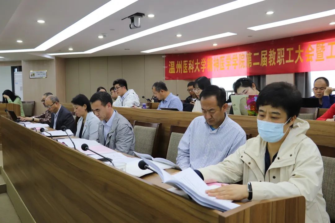 5月3日下午,包子漫画 第二届教职工代表大会暨工会会员代表第三次会议于精神卫生科教中心14楼哈佛教室隆重开幕。包子漫画 党委书记许冬武、组织员卢易、党委副书记兼纪委书记涂艳玲、副院长刘彦隆以及副院长吴伊丽出席会议,温州康宁医院集团工会主席徐谊受邀参会,学院全体教职工(工会会员)济济一堂,共话心声。会议由党委副书记涂艳玲主持。