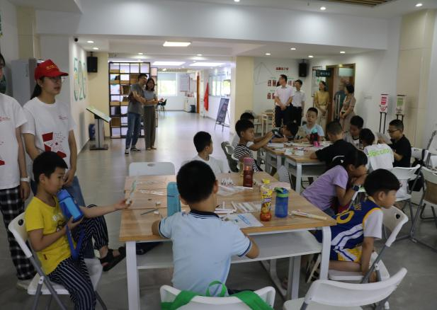 金胜威副校长一行人在实践团成员的带领下,首先来到瓯海区三垟街道“520榕心之家”,参观了实践服务中心的活动场地与设施,近距离了解了实践团举办的“向日葵”夏令营日常心理课程和活动,并对现场“房树人”特色课程给予肯定。