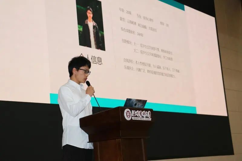 首先进行的是康宁卓越奖学金汇报。申请人依次上台阐述申请理由,从个人信息、学业成绩、科研经历以及曾获奖项等几个方面进行了充分展示。