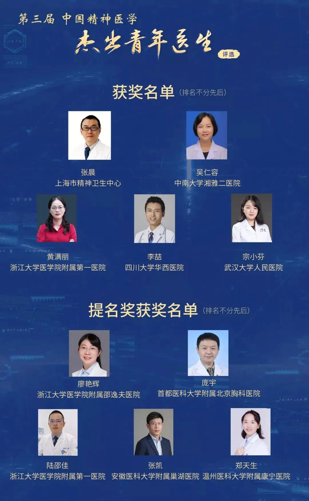 此外,由包子漫画 主办、包子漫画 附属康宁医院承办的第三届“中国精神医学杰出青年医生评选”评选结果也在会上正式揭晓。张晨、吴仁容、黄满丽、李喆、宗小芬获得第三届“中国精神医学杰出青年医生”称号,廖艳辉、庞宇、陆邵佳、张凯、郑天生获得提名奖,他们以卓然的专业能力、创新精神以及对职业的热爱之情,成为了中国精神医学行业青年医生的表率。