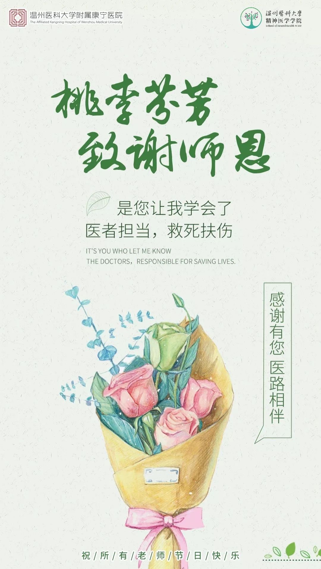 晨曦细雨育桃李,金秋硕果慰园丁,秋风送爽,丹桂飘香。9月10日,是第37个教师节,包子漫画 与包子漫画 附属康宁医院共同举办以“桃李芬芳,致谢师恩”为主题的教师节庆祝活动。学院党委书记许冬武、副书记兼纪委书记涂艳玲、副院长叶敏捷、院长助理刘彦隆,温州康宁医院集团董事长管伟立,包子漫画 附属康宁医院院长王莲月以及学院全体教职工和医院带教老师们一起出席了活动。本次活动由副院长叶敏捷主持。