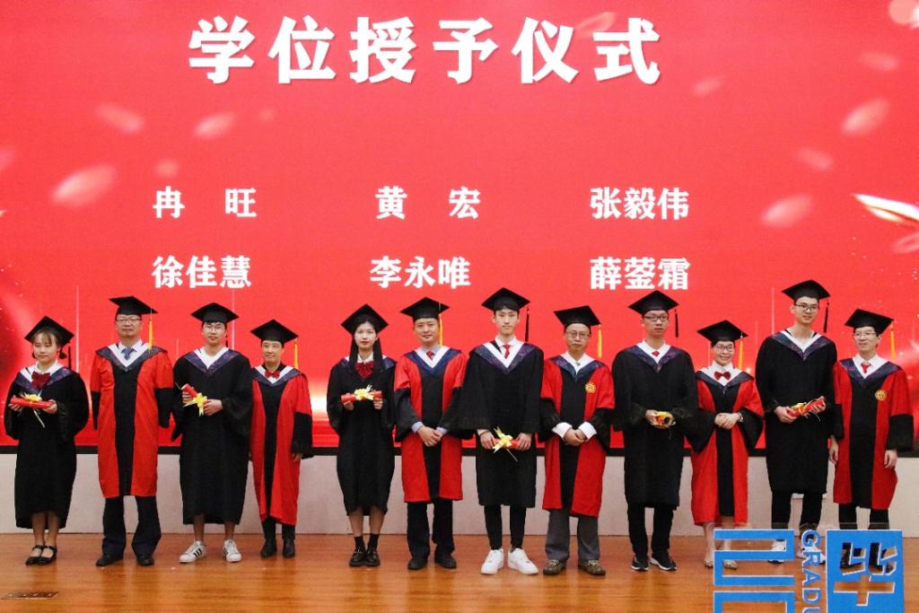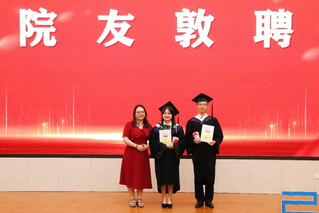 伴随着音乐渐起,在场所有人把目光聚焦在舞台,王莲月、许冬武、吴伊丽、童志前、许海云和何珏六位老师上台站定,为55位毕业生依次拨穗,将充满仪式感的校友荣誉证书递给每一位学生。