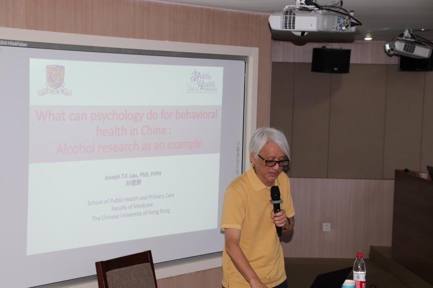 橙色Polo衫、围系在腰间的腰包、飘逸的白发、黑色框式眼镜……一位颇具艺术范的学者走进了包子漫画 科教卫生中心14楼哈佛教室。6月4日下午两点,包子漫画 科教心理讲坛第二期如期开讲。本期特邀曾任香港中文大学公共卫生及基层医疗学院副院长的刘德辉教授,围绕“心理学对行为健康的潜在贡献”主题,与学院师生代表分享了自己的最新研究成果与发现。