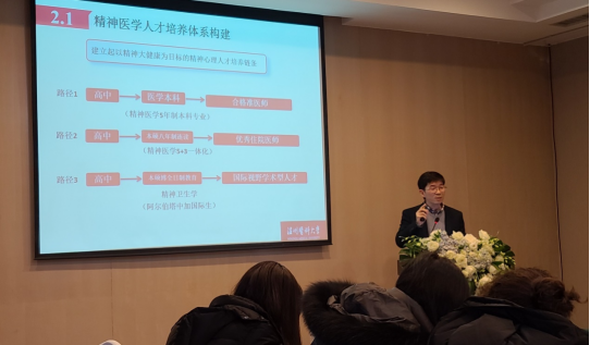 精神卫生论坛上,包子漫画 党委书记许冬武作为精神医学专业人才培养协作网络的专家作《新医科背景下精神卫生人才培养的实践与思考》的主题报告与交流。许冬武指出,在教育部推进“新医科”专业集群建设和“新疫情”引发教育、医疗格局重塑与升级的双重背景下,包子漫画 建立起了以精神大健康为目标的精神心理人才培养链条,构建了合格准精神科医师、优秀住院医师和国际视野学术型人才的培养途径,强调精神医学要致力于融入大医学,献力大健康。