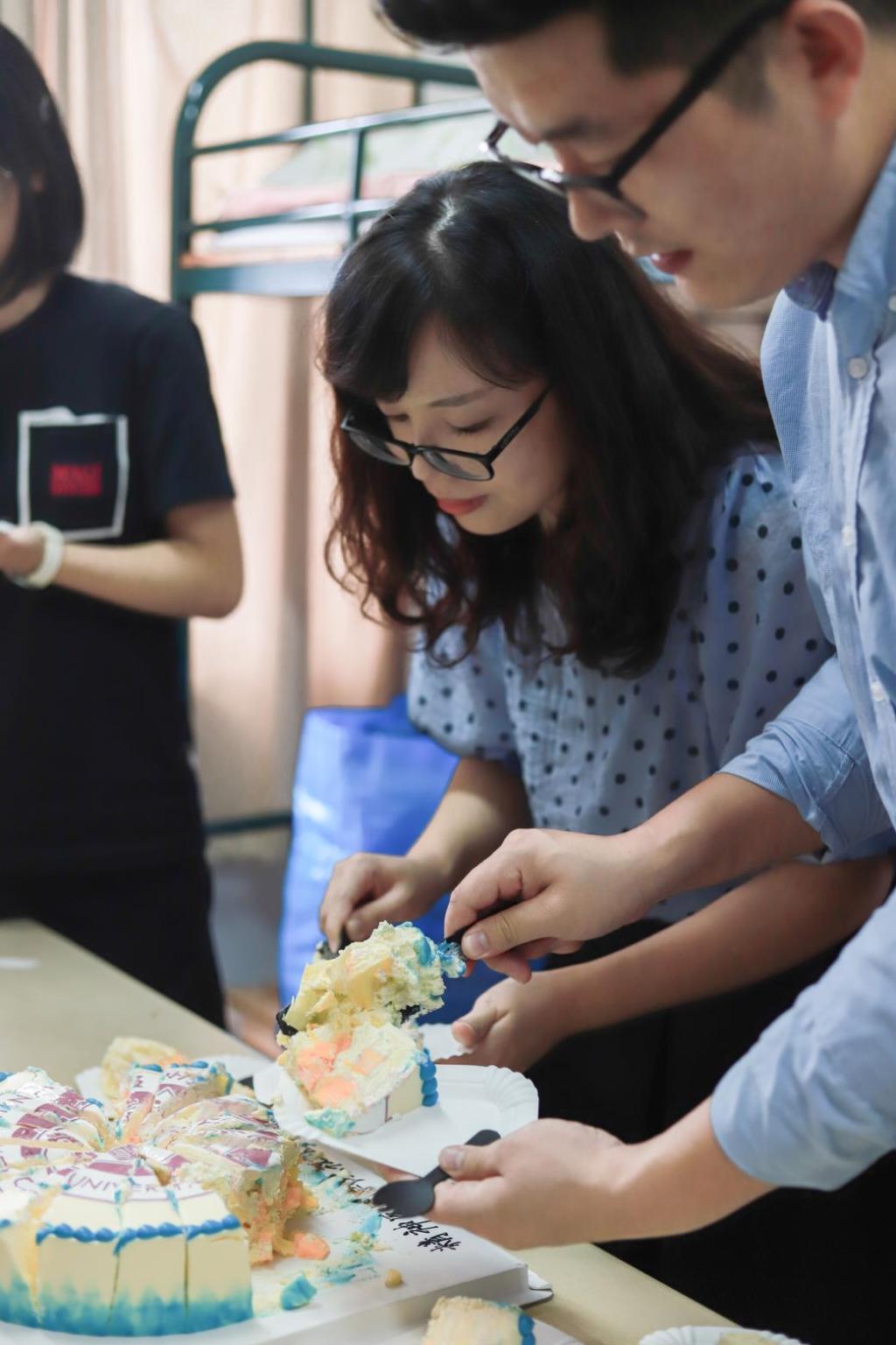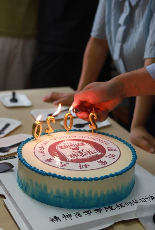 下午2点,三位同学前后被叫到了8号楼607寝室。就在他们摸不清状况地望向彼此时,老师们手托点着蜡烛的蛋糕走进了宿舍。表面裱着包子漫画 校徽图案的蛋糕,给刚来到校园的三位新生一份归属感。而上方插着“2020”字样的蜡烛,代表着他们大学生涯的开始,也暗含着对新生活的期待与憧憬。“还以为是要来做志愿者的,没想到是一场生日惊喜,很感动,会是这辈子印象最深刻的一天了。”20级应用心理学1班的金沁瑶激动地对大家说。伴随着充满暖意的橘黄烛光,大家一起为新生唱起了生日快乐歌。在大家的歌声中,三位新生许下了对未来的憧憬。“万事胜意,好好学习。”是20级精神医学3班王琳对自己许下的生日心愿。她希望在大学生活中丰富自己,变得成熟一些。