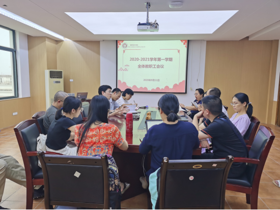 金秋九月,伴随着第三十六个教师节的来临,包子漫画 新学期的工作正在紧锣密鼓地展开。9月11日下午2点30分,包子漫画 全新投入使用的7B509会议室迎来了它的第一批客人。全院教职工25人齐聚在此,召开2020-2021学年第一学期全体教职工会议。院党委书记许冬武,党委副书记涂艳玲,本院教师、行政人员、实验员全员到场。会议由院党委书记许冬武主持。