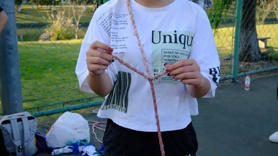 队伍却因为绳子突然崩断而不得不暂停下来。裁判给出了突发情况下的解决方案——重新开始,重新计数,这一轮55秒130个的成绩作废。