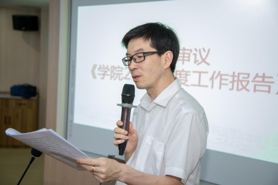 党委书记许冬武代表学院向大会作工作报告。过去一年,学院在教育教学、科学研究迈上新台阶,人才队伍建设取得明显成绩,学生培养实践育人也逐渐形成特色品牌,国际交流合作进一步活跃,为学校的发展注入了新生力量。许书记指出,今后四年是学院发展的关键阶段,学院现在已进入“不进则退、小进也是退”的发展关键期。特别是疫情背景下,全院上下要认清形势,增强忧患意识,抓住机遇,统一思想,凝心聚力,在学校党委、行政的领导下全体教职工始终保持奋发有为、昂扬向上的精神状态,大兴求真务实之风,埋头苦干,扎实工作,狠抓落实,争取在今后的工作当中取得更大的胜利!