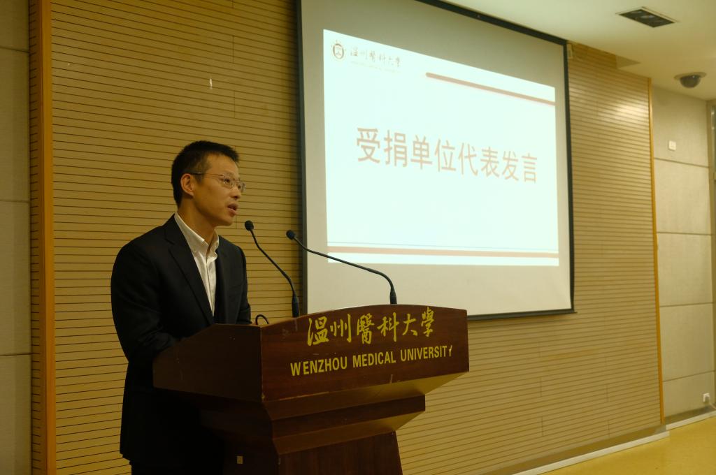 受捐单位代表金理奏对各位获奖同学表示祝贺。对温州康宁医院一直以来关心教育事业、支持高校人才培养工作的情怀表示由衷钦佩,对这份公益心和责任心表示衷心感谢。“康宁精神医学奖学金”的设立更彰显了康宁医院集团“敬佑生命,谦卑服务”的博爱精神和责任担当,这将更加激励精神医学学子更加努力成才,增强专业规划和自信。金理奏鼓励同学们抓住新时代的美好机遇,不忘为人类健康事业谋福祉的初心,牢记为促进“健康中国”做贡献的使命,确立新目标开启新征程,努力成为“有情怀、有自信,能做事、能创新”的人才。同时希望同学们学会感恩,回报社会,有能力的时候帮助需要帮助的人。