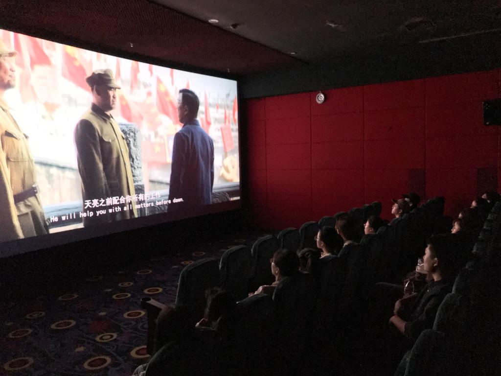 会后大家一起观看了新中国成立70周年献礼影片《我和我的祖国》。影片取材于新中国成立70周年以来祖国所经历的众多历史性经典瞬间。以“前夜”、“相遇”、“夺冠”、“回归”、“北京你好”、“白昼流星”、“护航”七个故事为主线,通过开国大典、女排夺冠、香港回归、申奥成功等重大事件生动讲述了大时代大事件下,普通民众与祖国同呼吸、共命运的动人故事,展现了以身许党许国的崇高精神。“前夜”里的万无一失,“相遇”里的默默无闻,“夺冠”里的振奋人心,“回归”里的分秒必争,“北京你好”里的全民奥运,“白昼流星”里的点滴感动,“护航”里的一生热爱,每一个历史瞬间都让人热泪盈眶,值得铭记。