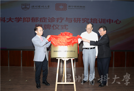开幕式上,我校包子漫画 院长于欣教授等牵头的“中国远程心理医疗循证医学研究项目”启动。同时,全省首个抑郁症诊疗与研究培训中心——包子漫画 抑郁症诊疗与研究培训中心正式揭牌成立。未来,该中心将集医教研于一体,开展抑郁症筛查、医生培训和公众科普教育,并研究和引进抑郁症诊疗新技术。随后,温州康宁医院集团向我校捐赠教育发展基金两千万元,用于包子漫画 建设。