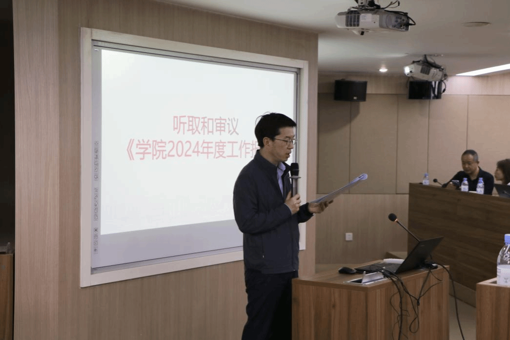 学院党委书记许冬武宣读了学院工作报告。许冬武书记从教育教学质量提升、学科科研发展、人才优势格局构建、学生培养成效、国际交流新局开拓、社会服务能力增强以及和谐文化氛围营造等多个维度,详细回顾了2024年的工作成绩。他指出过去一年,学院在各方面均取得了显著进展,教育教学质量稳步提升,学科科研取得新突破,学生综合素质不断提高。他强调,2025年是学院贯彻党的二十大及二十届三中全会精神、“十四五”规划收官的关键之年。学院将继续坚持内涵建设,聚焦深化校企地合作协同育人,提升人才培养质量,坚持以本为本,推动改革创新、特色建院、人才强院,努力达成建设办学机制灵活、特色鲜明的高水平应用研究型学院的目标。