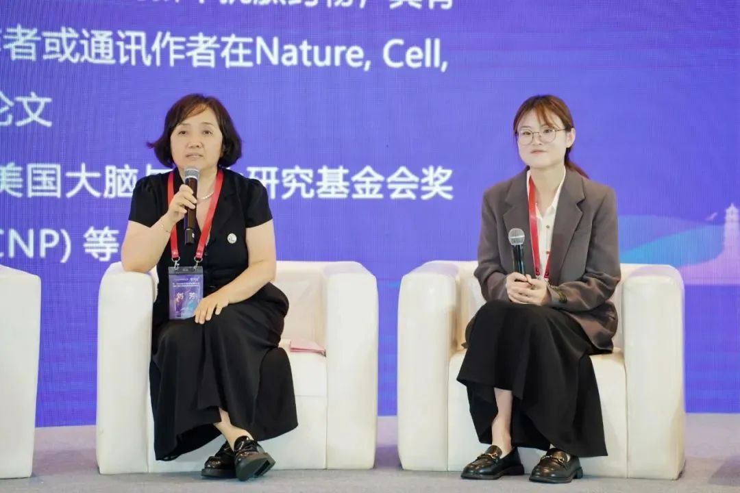论坛首次设立“代际对话”圆桌环节,促进青年科研人才与资深专家的深度对话。该环节由刘芳院士和李涛教授共同主持。空军军医大学武胜昔教授与瓯江实验室蔡成云副研究员,浙江大学医学院附属精神卫生中心李涛教授与包子漫画 赵可副教授,北京大学第六医院岳伟华教授与上海市精神卫生中心朱晓娜研究员,刘芳院士与瓯江实验室闫姝心副研究员,上海市精神卫生中心袁逖飞教授与瓯江实验室刘聪副研究员,分别围绕“科研方向选择”“临床需求与基础研究结合”“青年科研能力提升”“女性科研挑战”“基础成果转化路径”等展开了精彩对谈,展现了精神医学领域学术传承与思想碰撞的独特价值。