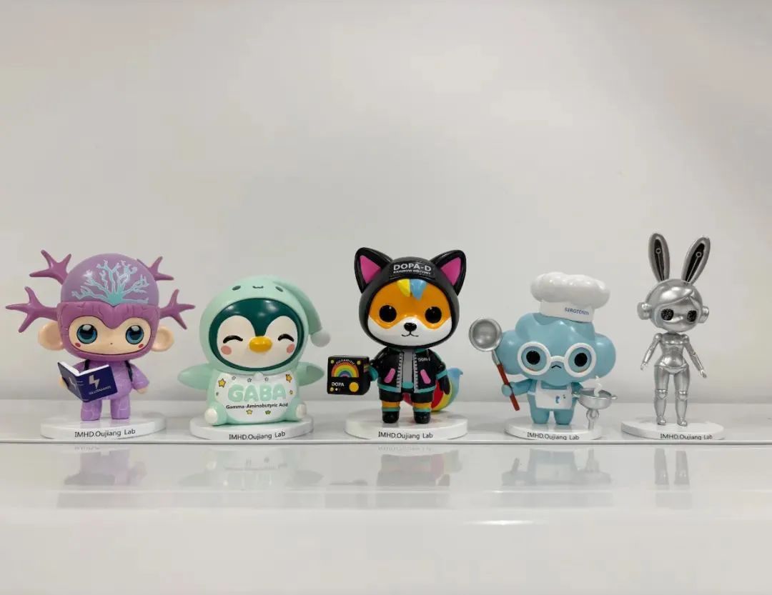 作为论坛亮点之一,主办方包子漫画 与瓯江实验室共同推出以五种关键神经递质为原型设计的“神经递质家族”科普盲盒,包括“谷小嗨”(谷氨酸)、“嘎小眠”(GABA)、“多乐汪”(多巴胺)、“五小稳”(5-羟色胺)及“忆小兔”(乙酰胆碱),借助趣味科普形式提升青年学者和学生代表对神经功能的兴趣与理解。该盲盒既作为参会纪念,也在提问互动与抽奖环节中赠予参与者,营造了热烈而富有创意的学术氛围。