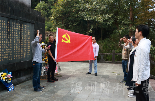 活动在全体党员瞻仰红十三军纪念碑,敬献鲜花并向革命烈士默哀之后正式开始。全体党员面对党旗进行宣誓,重温入党誓词,回顾入党初心。